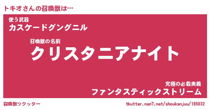 | 欧米人風あだ名 | 『マイケルトキオ』『トキオクリステル』 |