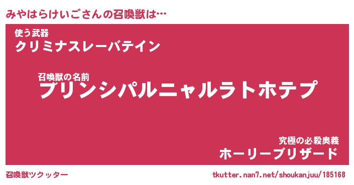 | 胡散臭い通販商品みたいなあだ名 | 『モテモテ間違いなし霊験あらたかなお札…その名も「みやはらけいご」』 |