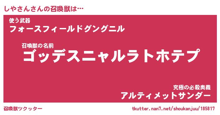 | ファンタジー風あだ名 | 『シヤフェル』『エターナルシヤサンー』 |