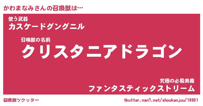 | 伝説のあだ名 | 『封印されし竜騎士かわまなみ』 |