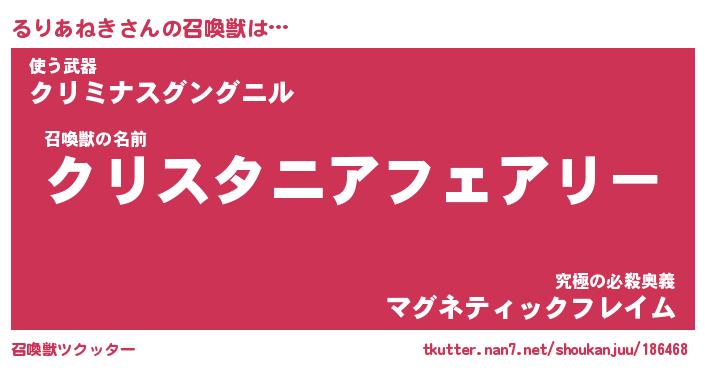 | 自動車の名前っぽいあだ名 | 『ルリティマ』『ルスラー』『ルント』 |
