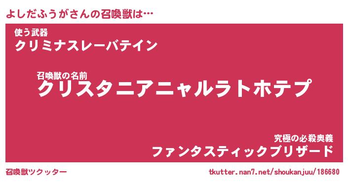 | ヒーロー風カッコイイあだ名 | 『スーパーヨシダフウガ』『天弓騎士ヨシ』 |
