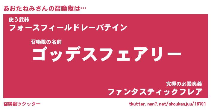 | 伝説のあだ名 | 『不死鳥の傭兵あおたねみ』 |