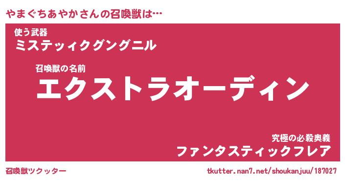 | 伝説のあだ名 | 『伝説のスナイパーやまぐちあやか』 |