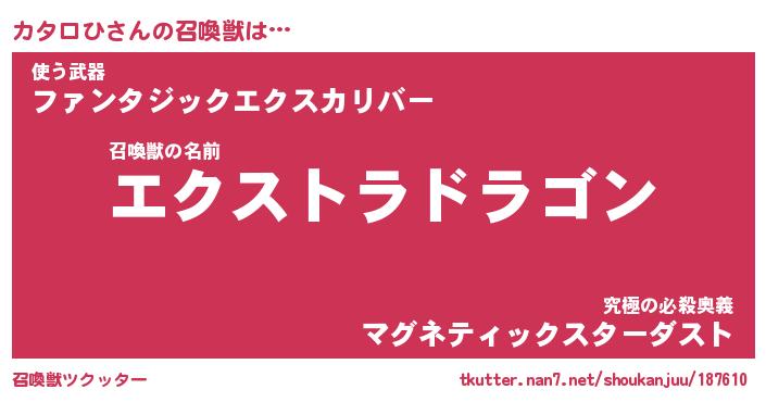 | ヒーロー風カッコイイあだ名 | 『スーパーカタロヒ』『暗黒騎士カタ』 |
