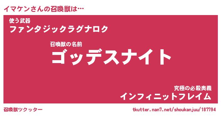 | ヒーロー風カッコイイあだ名 | 『スーパーイマケン』『幻影騎士イマ』 |