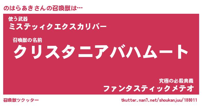 | ファンタジー風あだ名 | 『ノハフェル』『エターナルノハラアキー』 |