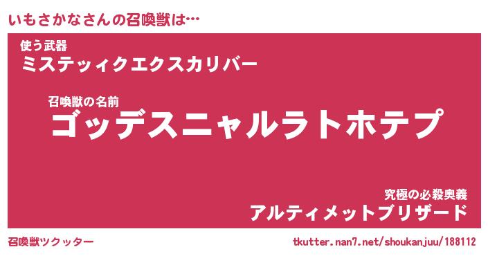 | ファンタジー風あだ名 | 『イモフェル』『エターナルイモサカナー』 |