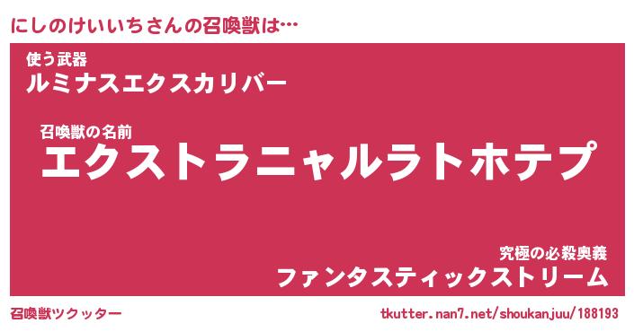 | 胡散臭い通販商品みたいなあだ名 | 『必ず成功する霊験あらたかなお札…その名も「にしのけいいち」』 |
