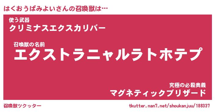 | ヒーロー風カッコイイあだ名 | 『スーパーハクオウバミヨイ』 |