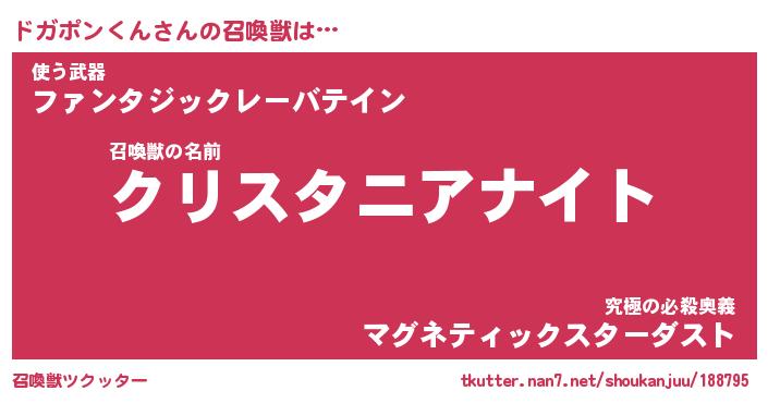 | ヒーロー風カッコイイあだ名 | 『スーパードガポンクン』『炎刃騎士ドガ』 |