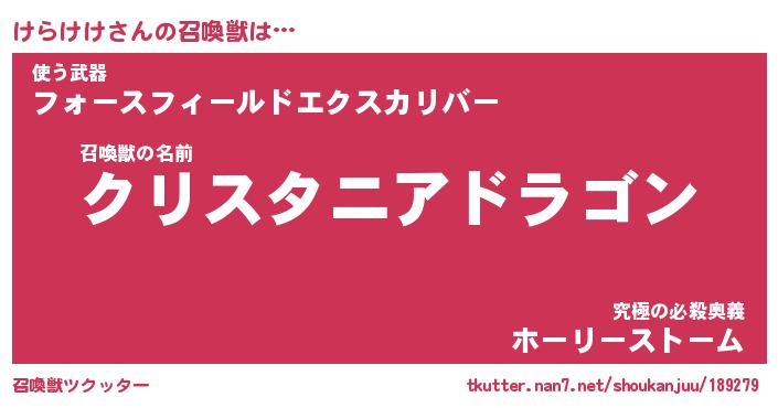 | 伝説のあだ名 | 『封印されし竜騎士けらけけ』 |