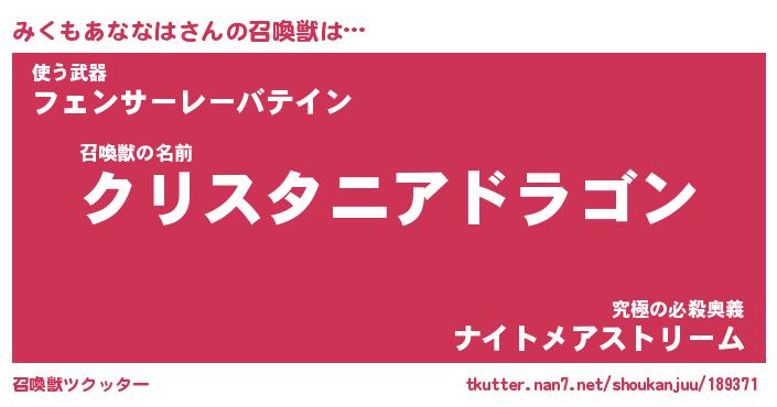 | ヒーロー風カッコイイあだ名 | 『スーパーミクモアナナハ』 |