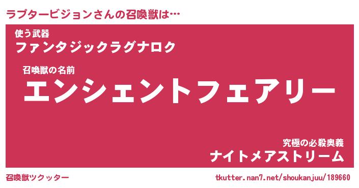 | 男性向けラノベタイトル風あだ名 | 『ラプタービジョンの憂鬱』 |