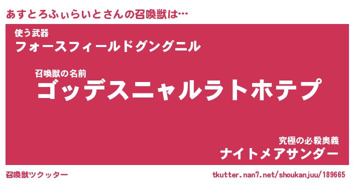 | 伝説のあだ名 | 『不死鳥のスナイパーあすとろふぃらいと』 |