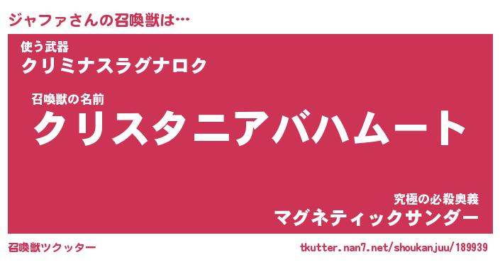 | ファンタジー風あだ名 | 『ジャフェル』『エターナルジャファー』 |