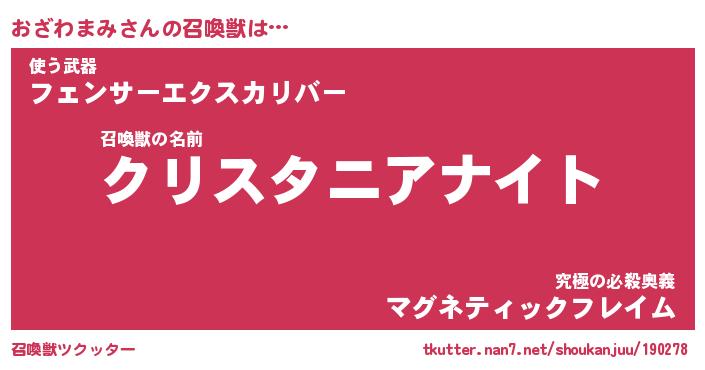 | ファンタジー風あだ名 | 『オザフェル』『エターナルオザワマミー』 |
