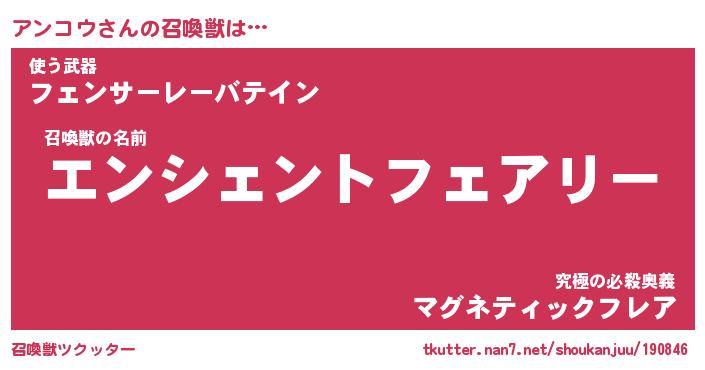 | ファンタジー風あだ名 | 『アンフェル』『エターナルアンコウー』 |