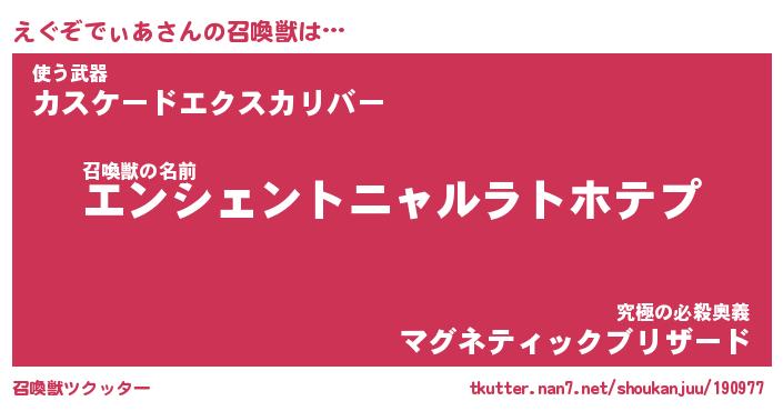 | 伝説のあだ名 | 『伝説のスナイパーえぐぞでぃあ』 |
