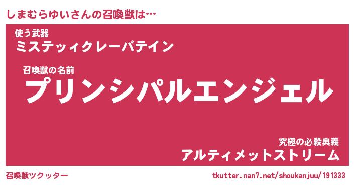 | ファンタジー風あだ名 | 『シマフェル』『ファントムシマス』 |