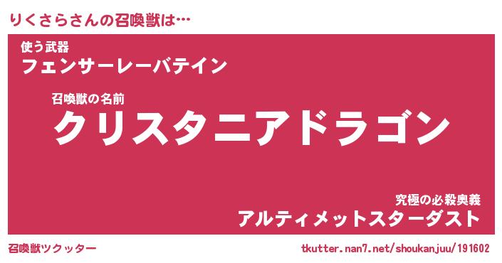 | 伝説のあだ名 | 『封印されし竜騎士りくさら』 |