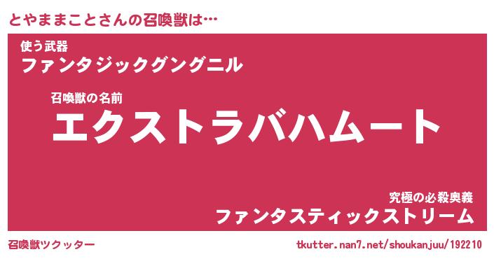 | ヒーロー風カッコイイあだ名 | 『スーパートヤママコト』『天弓騎士トヤ』 |