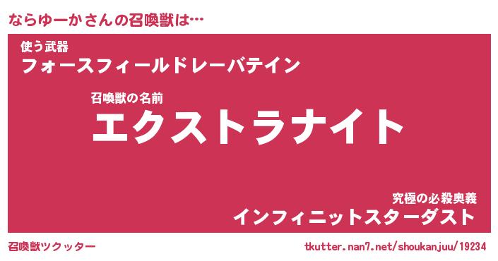 | ヒーロー風カッコイイあだ名 | 『スーパーナラユーカ』『幻影騎士ナラ』 |