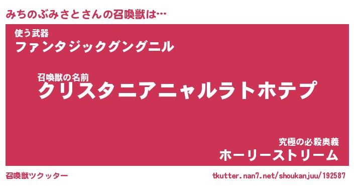 | 伝説のあだ名 | 『封印されしスナイパーみちのぶみさと』 |