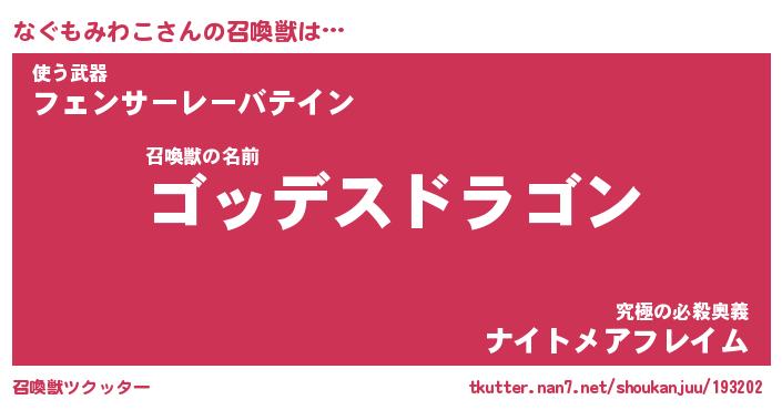 | 伝説のあだ名 | 『不死鳥の竜騎士なぐもみわこ』 |