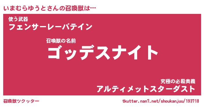 | 女子向けラノベタイトル風あだ名 | 『いまむらゆうと姫と円卓の騎士』 |