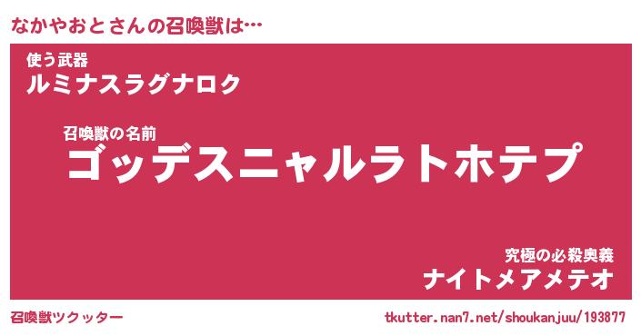 | ヒーロー風カッコイイあだ名 | 『スーパーナカヤオト』『黄金騎士ナカ』 |