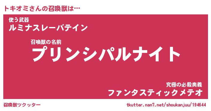 | ファンタジー風あだ名 | 『トキフェル』『エターナルトキオミー』 |