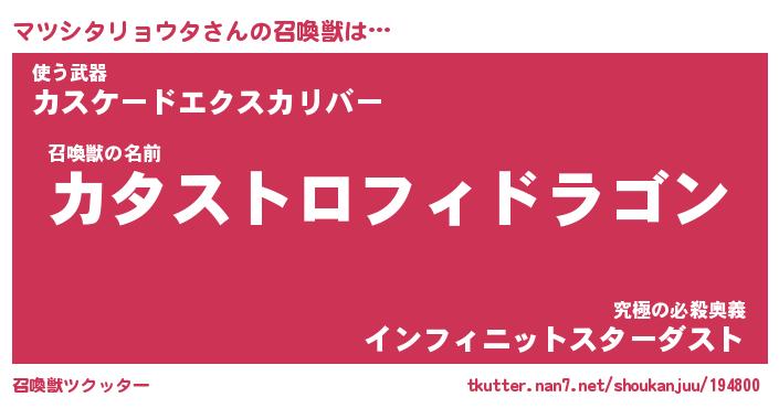 | 伝説のあだ名 | 『封印されし竜騎士マツシタリョウタ』 |