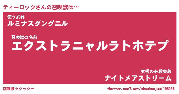 | 男性向けラノベタイトル風あだ名 | 『ティーロックの憂鬱』 |