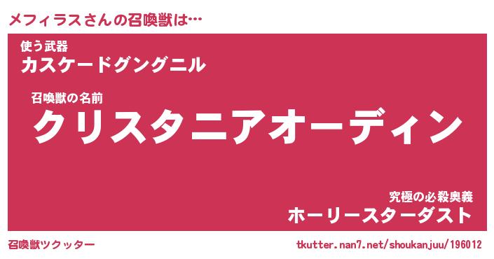 | ツイッター | メフィラスさんのツイッターID『namakemono_kun』 |