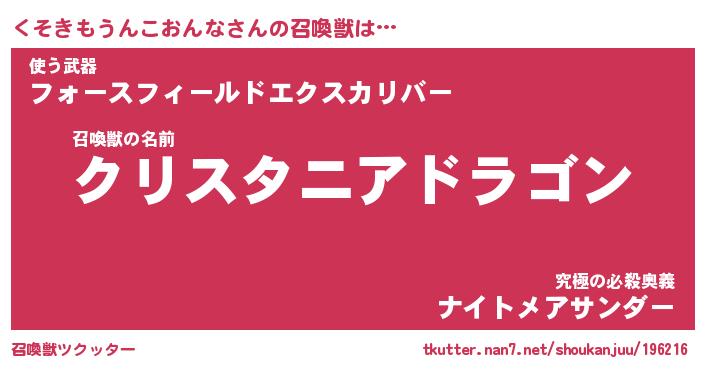 | 伝説のあだ名 | 『封印されし竜騎士くそきもうんこおんな』 |