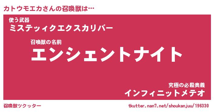 | 伝説のあだ名 | 『伝説の傭兵カトウモエカ』 |