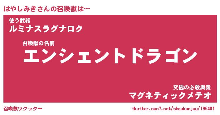 | ファンタジー風あだ名 | 『ハヤフェル』『エターナルハヤシミキー』 |