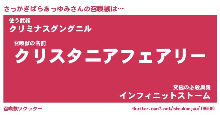 | ツイッター | さっかきばらあっゆみさんのツイッターID『namakemono_idle』 |