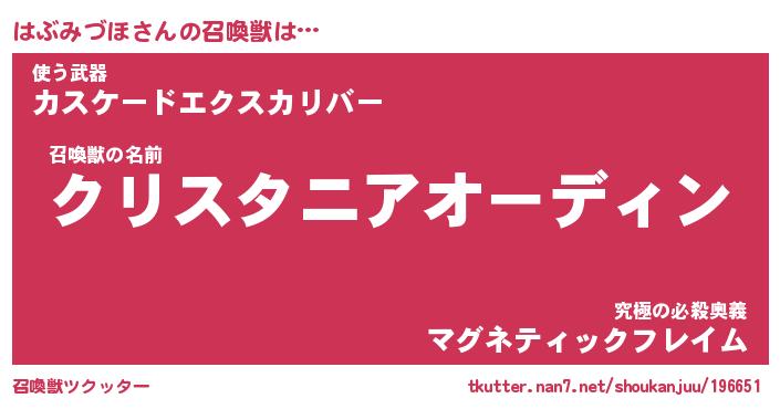 | 自動車の名前っぽいあだ名 | 『ハブティマ』『ハクア』『ヴィッハ』 |