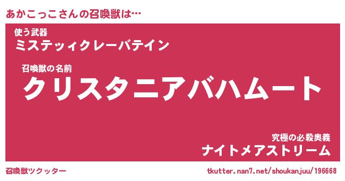 | ファンタジー風あだ名 | 『アカフェル』『エターナルアカコッコー』 |