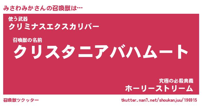 | ヒーロー風カッコイイあだ名 | 『スーパーミサワミカ』『暗黒騎士ミサ』 |