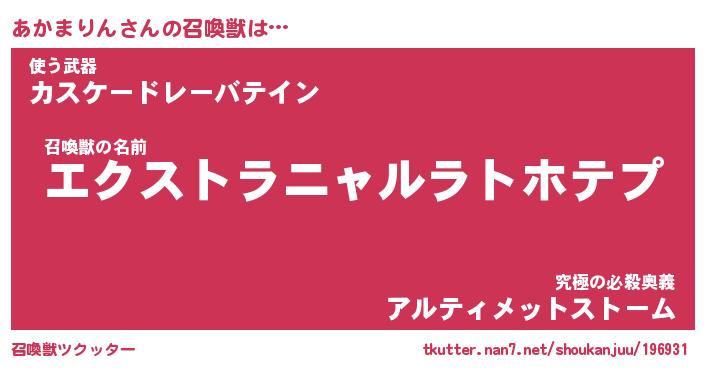 | ファンタジー風あだ名 | 『アカフェル』『エターナルアカマリンー』 |