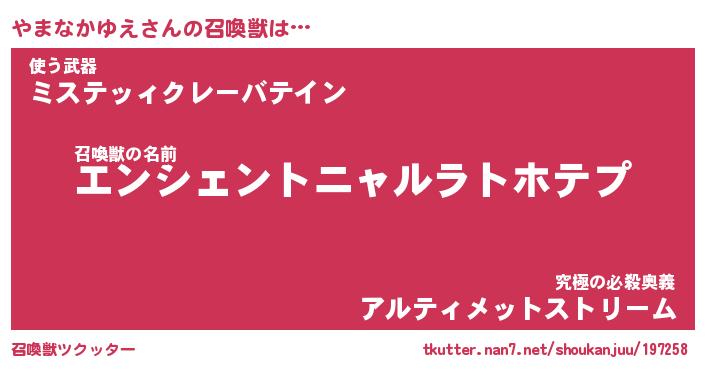 | ヒーロー風カッコイイあだ名 | 『スーパーヤマナカユエ』『天弓騎士ヤマ』 |
