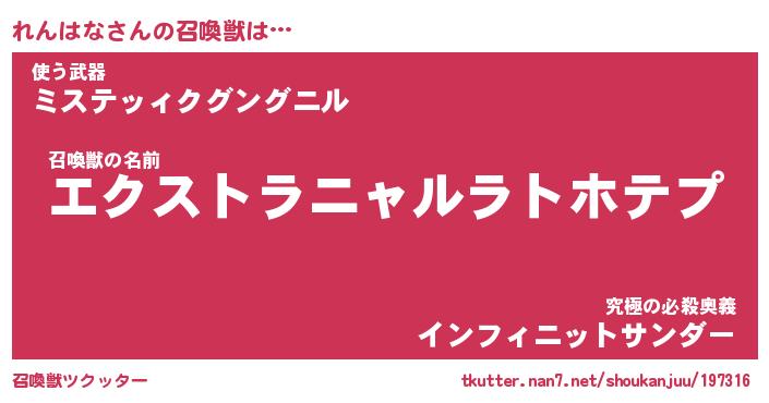 | ファンタジー風あだ名 | 『レンフェル』『エターナルレンハナー』 |