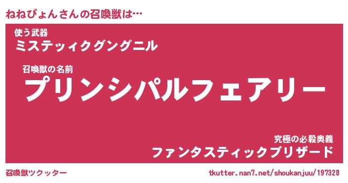 | ファンタジー風あだ名 | 『ネネフェル』『エターナルネネピョンー』 |