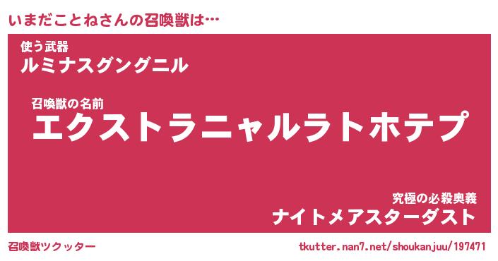 | ポケモン風あだ名 | 『イマチュウ』『イマダダネ』 |