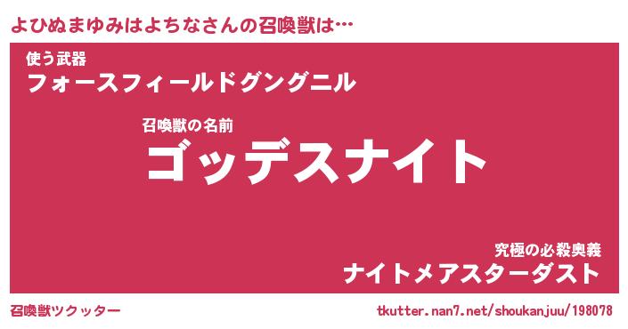 | 女子向けラノベタイトル風あだ名 | 『よひぬまゆみはよちな姫と円卓の騎士』 |