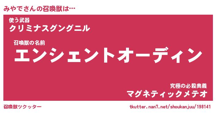 | 男性向けラノベタイトル風あだ名 | 『みやでの憂鬱』 |