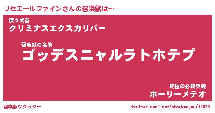 | 伝説のあだ名 | 『不死鳥のスナイパーリセエールファイン』 |